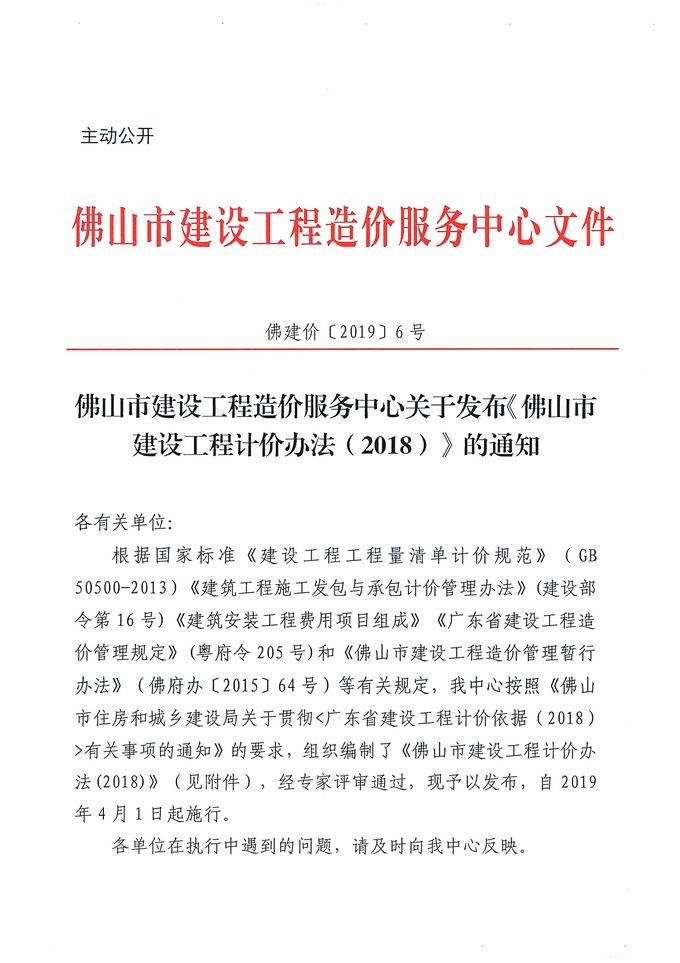 佛山市建设工程造价服务中心关于发布《佛山市建设工程计价办法(2018)》的通知