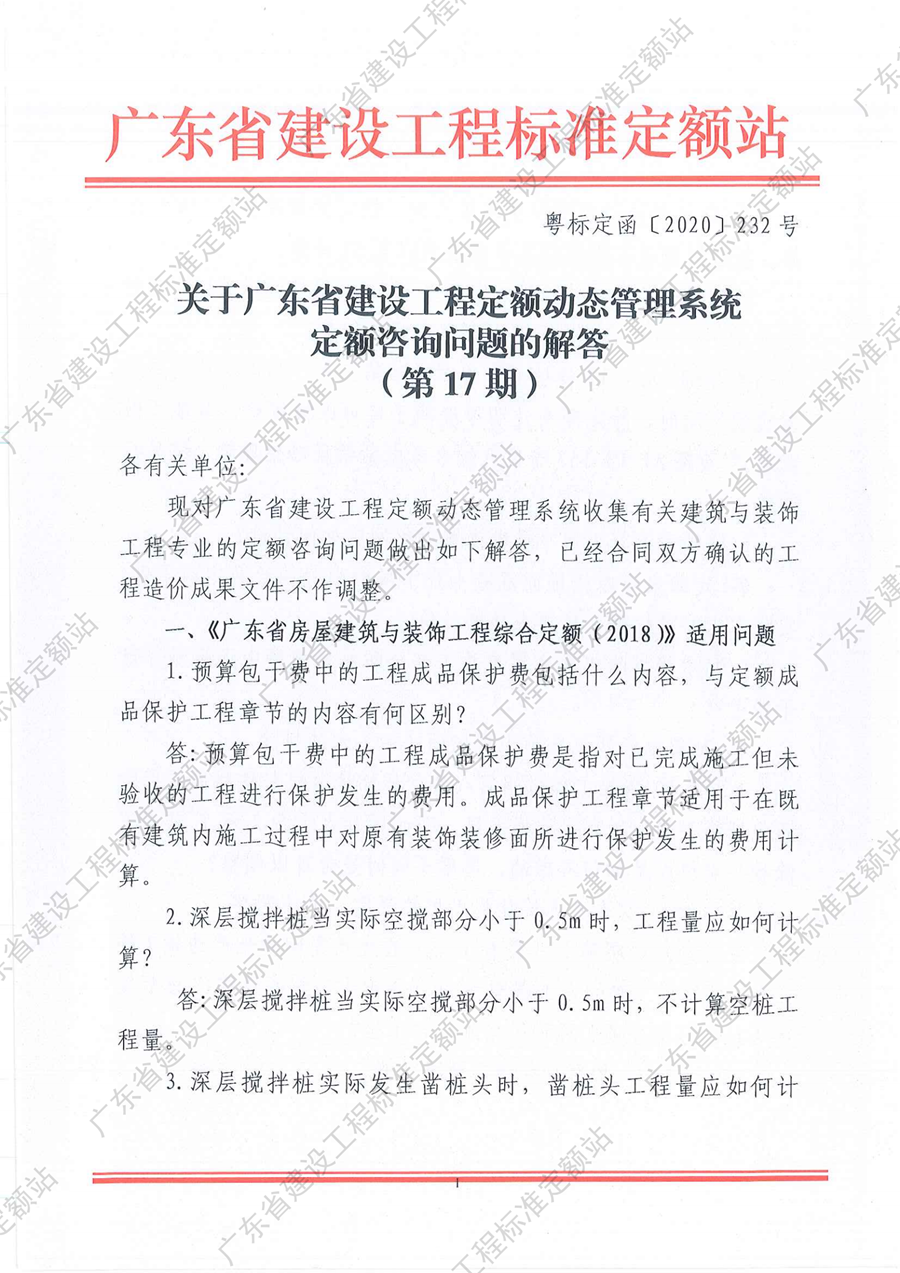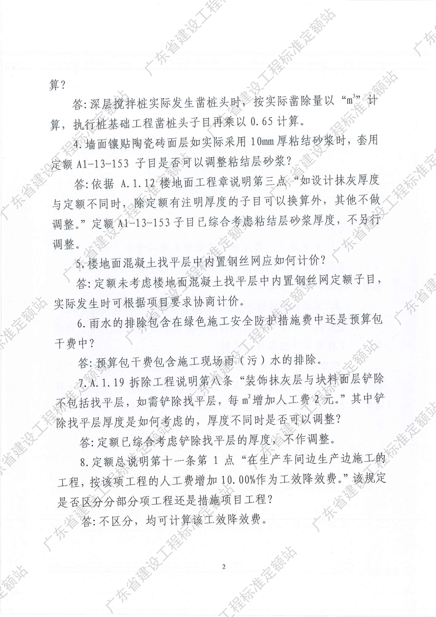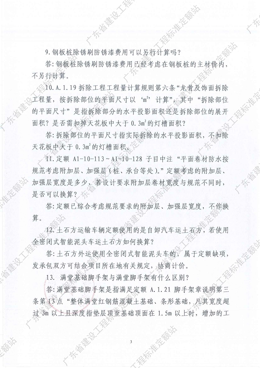 关于广东省建设工程定额动态管理系统 定额咨询问题的解答 (第17期)