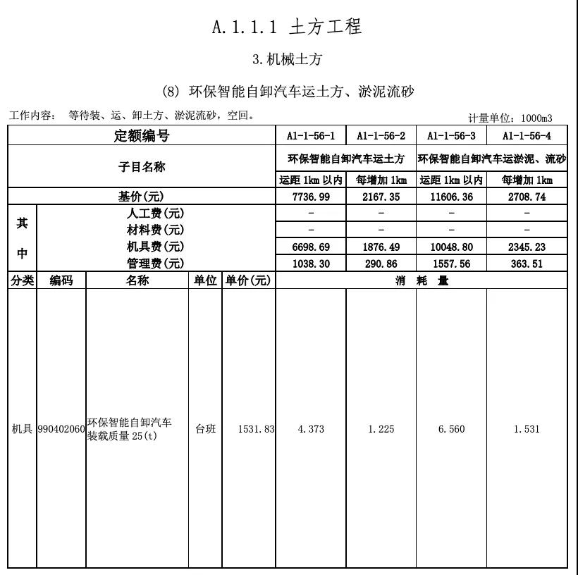 附件:环保智能自卸汽车运输土石方补充定额子目