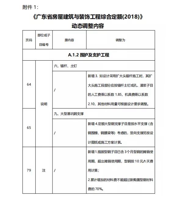 1:《广东省房屋建筑与装饰工程综合定额(2018)》动态调整内容及子目;