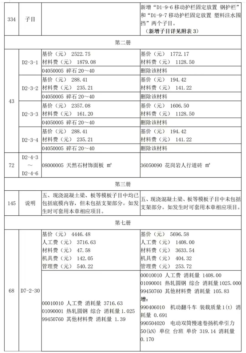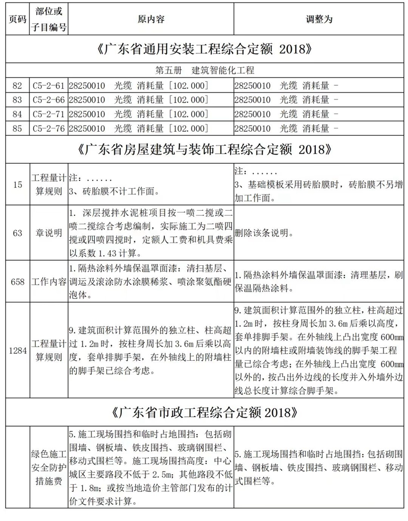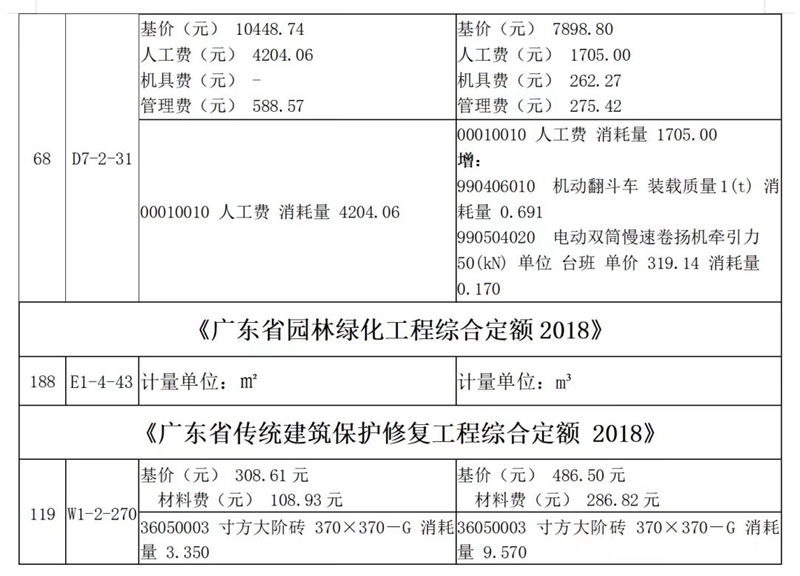 附件:《广东省建设工程计价依据2018》动态调整内容