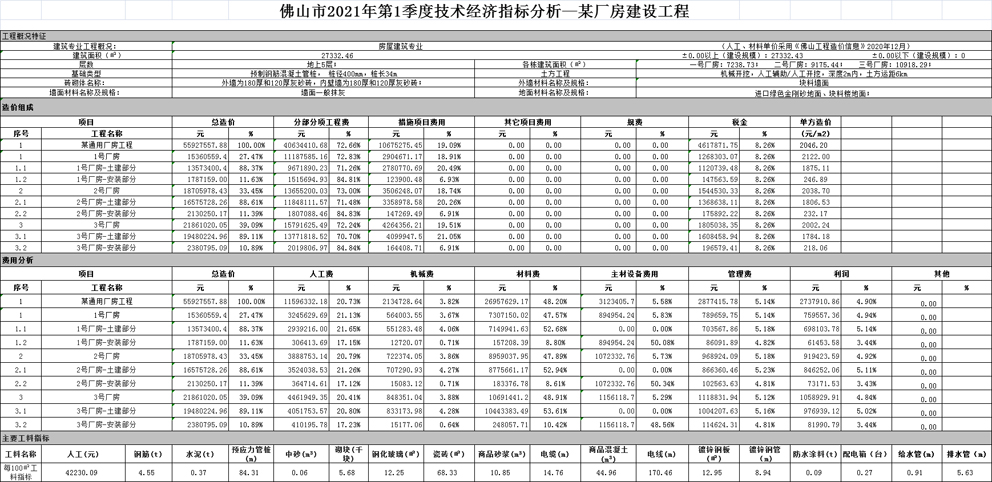 佛山市2021年第1季度技术经济指标分析—某厂房建设工程