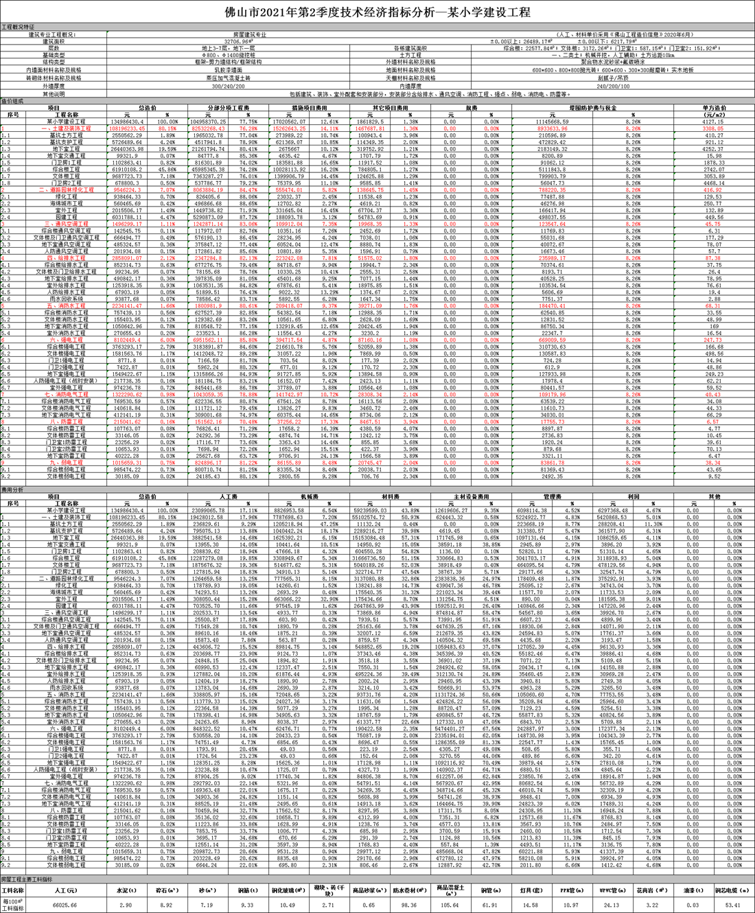 佛山市2021年第2季度技术经济指标分析—某小学建设工程