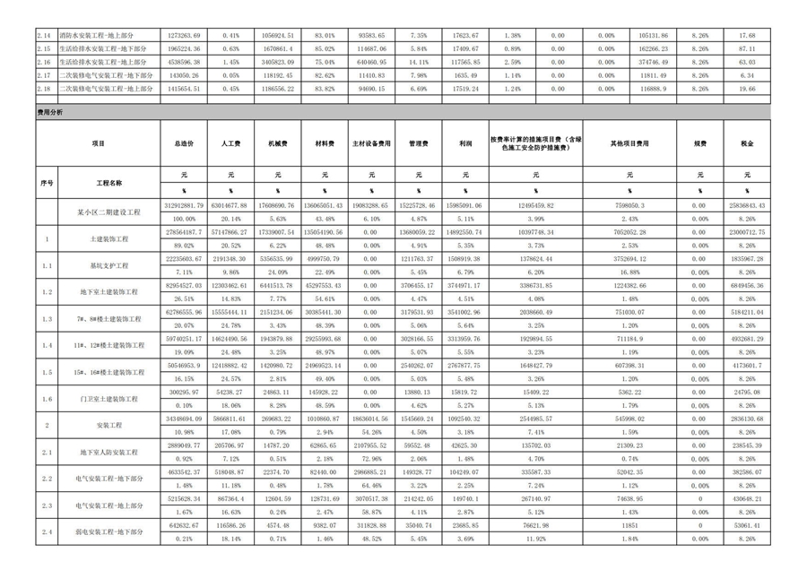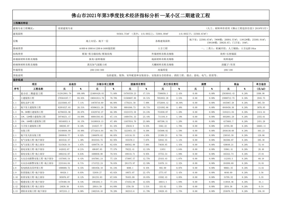 佛山市2021年第3季度技术经济指标分析—某小区二期建设工程